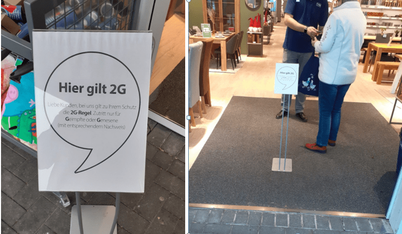 Though I had known unvaccinated people were being banned from entering “non-essential” shops in Germany, it was still quite a shock to me yesterday to pass by a Danish furniture shop and finding signs outside declaring “unvaccinated” people were not allowed to enter.