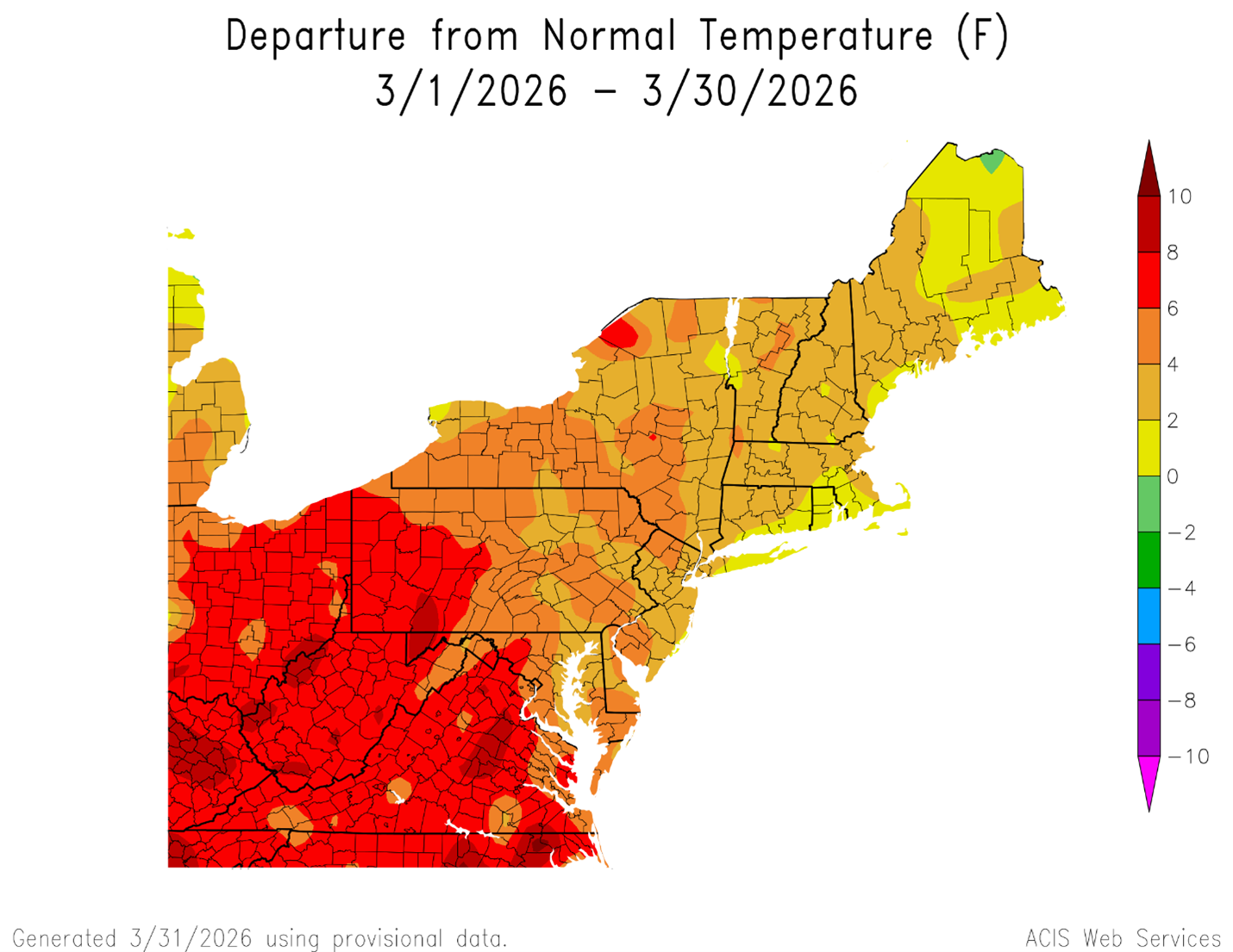 Similarly, Pennsylvania’s March temperature has been above normal: